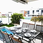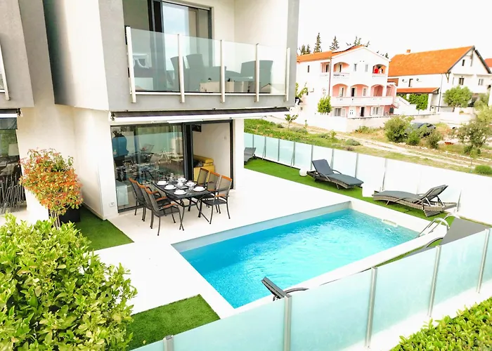 The beachfront 82 m^2 Villa Aliara Pool Apartment Vodice is located just 1.7 km from plaz Bristak and offers Wi-Fi for either business or leisure. Tijat is around a 10-minute drive from the spacious apartment.